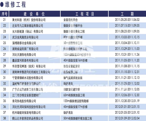 宏順建設工程有限公司是國家批準成立的專業(yè)高空作業(yè)企業(yè):承攬過(國內.國外)煙囪新建、煙囪防腐、磚煙囪新建、煙囪改造、煙囪維修、煙囪脫硫防腐、煙囪拆除加高、煙囪滑膜等高空作業(yè)工程。具有“不搭腳手架 、 不需要停產(chǎn)”施工特點。